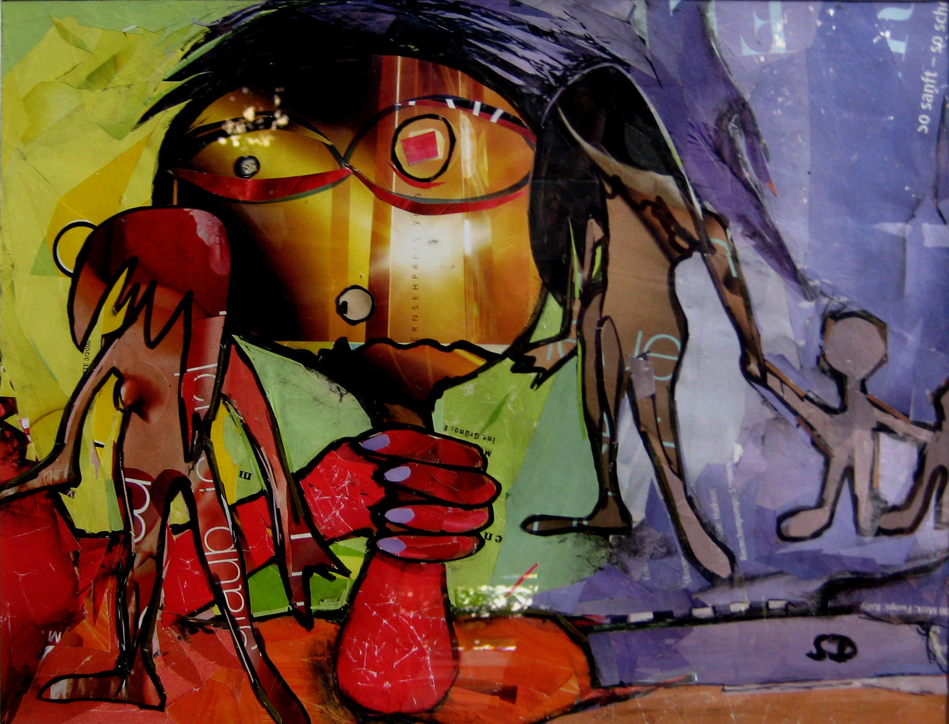 Collagen aus unzähligen Papierschnipseln von Illustriertenseiten